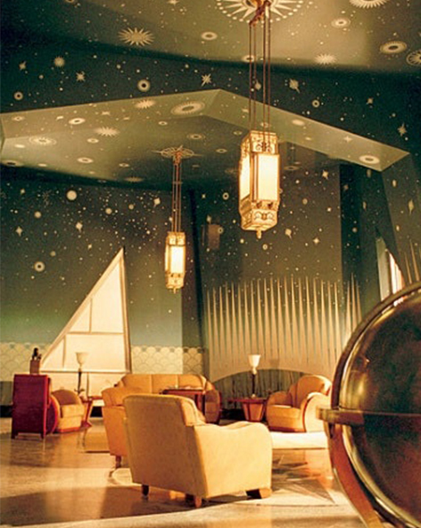 This one is a square-shaped space, whose floor and walls are of the same color: a light gray. The ceiling is of a darker gray, which draws towards the black. This last one seems to float above our heads, it is retained by what could be similar to beams in reality. This empty space created between the walls and the ceiling, allows us to have a view on a starry sky, it seems to be night "outside". We are in a dimly lit room and in one of the corners the logo "NODA" is positioned.